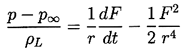 ......(2.8) In the absence of mass transport across the boundary (evaporation or condensation) this force must be zero, and substitution of the value for (p)r=R from Equation (\ref{BE7}) with F=R2dR/dt yields the generalized Rayleigh-Plesset equation for bubble dynamics: