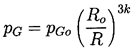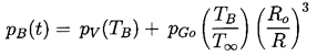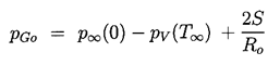 In addition to the Rayleigh-Plesset equation, considerations of the bubble contents are necessary. To be fairly general, it is assumed that the bubble contains some quantity of contaminant gas whose partial pressure is pGo at some reference size, Ro, and temperature, T∞ . Then, if there is no appreciable mass transfer of gas to or from the liquid, it follows that
