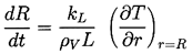 ......(2.15) where kL is the thermal conductivity of the liquid. Assuming that all of this is used for vaporization of the liquid (this neglects the heat used for heating or cooling the existing bubble contents, which is negligible in many cases), one can evaluate the mass rate of production of vapor and relate it to the known rate of increase the volume of the bubble. This yields
