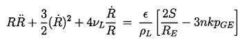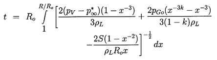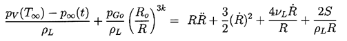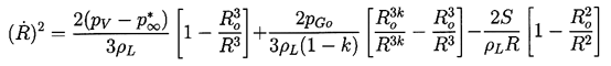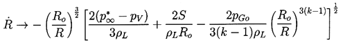 where, in the case of k=1, the gas term is replaced by 2pGoln(Ro/R)/ρL. However, most bubble collapse motions become so rapid that the gas behavior is much closer to adiabatic than isothermal, and we will therefore assume k is not equal to 1.
