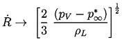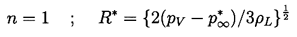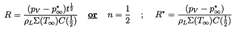 ......(2.32) Consider first the characteristic behavior for bubble growth which this solution exhibits when p∞*<p∞(0). Equation 2.29 shows that the asymptotic growth rate for R»Ro is given by