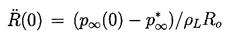 ......(2.28) Analytic solutions to Equation 2.27 are limited to the case of a step function change in p∞. Nevertheless, these solutions reveal some of the characteristics of more general pressure histories, p∞(t), and are therefore valuable to document. Denoting the constant value of p∞(t>0) by p∞*, Equation 2.27 can be integrated by multiplying through by 2R2dR/dt and forming time derivatives. Only the viscous term cannot be integrated in this way, and what follows is confined to the inviscid case. After integration, application of the initial condition (dR/dt)t=0=0 yields