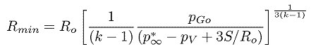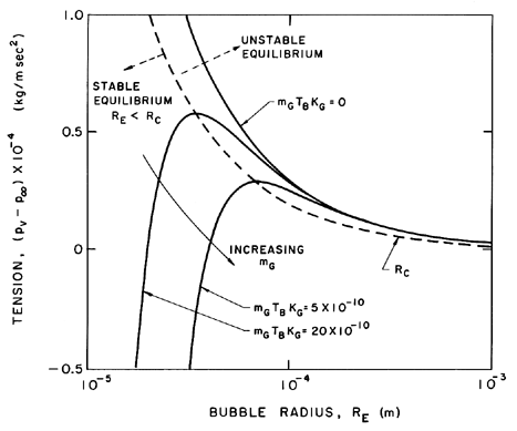 where mG is the mass of gas in the bubble and KG is the gas constant. Indeed for a given mass of gas there exists a critical bubble size, RC, where