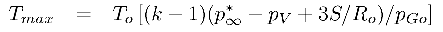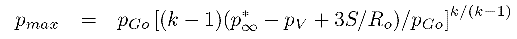 will be reached, following which the bubble will rebound. Note that, if pGo is small, the Rmin could be very small indeed. The pressure and temperature of the gas in the bubble at the minimum radius are then given by pmax and Tmax where