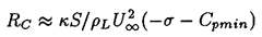 where Cpmin is the minimum pressure coefficient in the flow and the factor κ is close to unity.