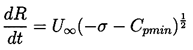 ......(2.60) Using the relation 2.60, one can define a critical time, tc1 (called the first critical time), during the growth when the order of magnitude of term (2) becomes equal to the order of magnitude of the retained terms, as represented by (dR/dt)2. This first critical time is given by