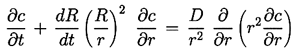 ......(2.53) The process of mass transfer can be analysed by noting that the concentration, c(r,t), of gas in the liquid will be governed by a diffusion equation identical in form to Equation 2.15,
