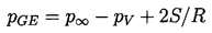 ......(2.54) The simplest problem is that of a bubble of radius, R, in a liquid at a fixed ambient pressure, p∞, and gas concentration, c∞. In the absence of inertial effects the partial pressure of gas in the bubble will be pGE where
