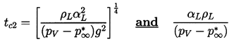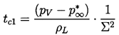 where the constants of order unity have been omitted for clarity. Thus tc1 depends not only on the tension (pV -p∞*)/ρL but also on Σ(T∞), a purely thermophysical quantity that is a function only of the liquid temperature. Recalling Equation 2.25,