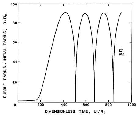 Finally we note that there is an important mass diffusion effect caused by ambient pressure oscillations in which nonlinearities can lead to bubble growth even in a subsaturated liquid. This is known as ``rectified diffusion'' and is discussed later in Section 4.9.