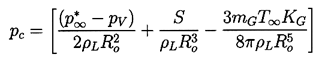 ......(3.3) If this is substituted into the Plesset-Zwick Equation 2.20 to evaluate the thermal term in the Rayleigh-Plesset equation, one obtains a critical time tc4, necessary for development of significant thermal effects given by