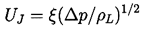 where ξ is a constant and Δp is the difference between the remote pressure, which would maintain the bubble at equilibrium at its maximum or initial radius, and the remote pressure present during collapse. Gibson (1968) found that ξ=7.6 fit his experimental observations; Blake and Gibson (1987) indicate that ξ is a function of the ratio, C, of the initial distance of the bubble center from the wall to the initial radius and that ξ=11.0 for C=1.5 and ξ=8.6 for C=1.0. Voinov and Voinov (1975) found that the value of ξ could be as high as 64 if the initial bubble had a slightly eccentric shape.