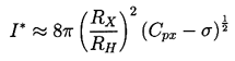......(3.15) Numerical integrations of the Rayleigh-Plesset equation for a range of typical circumstances indicate that RX/RM is approximately 0.62 where RM is the maximum volumetric radius and that (Cpx-σ) is proportional to RM/RH so that