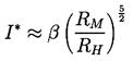 ......(3.16) The aforementioned integrations of the Rayleigh-Plesset equation yield a factor of proportionality, β, of about 35. Moreover, the upper envelope of the experimental data of which Figure 3.19 is a sample appears to correspond to a value of β of approximately 4. We note that a quite similar relation between I* and RM/RH emerges from the analysis by Esipov and Naugol'nykh (1973) of the compressive sound wave generated by the collapse of a gas bubble in a compressible liquid. Indeed, the compressibility of the liquid does not appear to affect the acoustic impulse significantly.