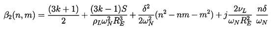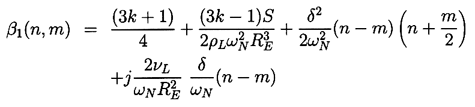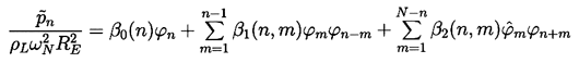 ......(4.16) where nδ, n=1 to N, represents a discretization of the frequency domain. When these are substituted into Equation 2.27, all cubic or higher order terms are neglected, and the coefficients of the time-dependent terms are gathered together, the result is the following nonlinear version of Equation 4.3 (Kumar and Brennen 1993):