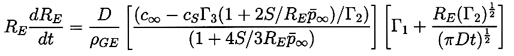 In the absence of oscillations and surface tension, this leads to the conclusion that the bubble will grow when c∞>cS and will dissolve when the reverse is true. The term involving surface tension causes bubbles in a saturated solution (cS=c∞) to dissolve but usually has only a minor effect in real applications. However, in the presence of oscillations the term Γ3/Γ2 will decrease below unity as the amplitude,