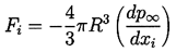 Since both R and dp∞/dxi contain oscillating components, it follows that the combination of these in Equation 4.37 will lead to a nonlinear, time-averaged component in Fi . Substituting Equations 4.36, 4.1, and 4.2 into 4.37, this time-average force becomes