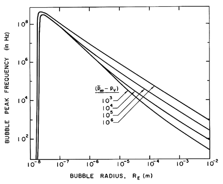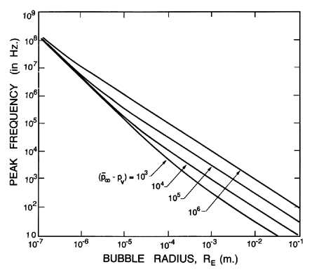 The peak frequency, ωP, is an important quantity to consider in any bubble dynamic problem. Note from Equation 4.6 that ωP is a function only of (
