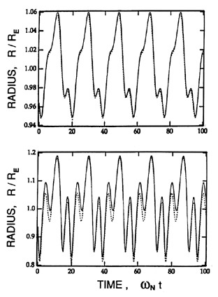 We shall first examine the characteristics of the radial oscillations that are caused by a single excitation frequency. It is clear from the form of Equation 4.18 that, in this case, the only non-zero
