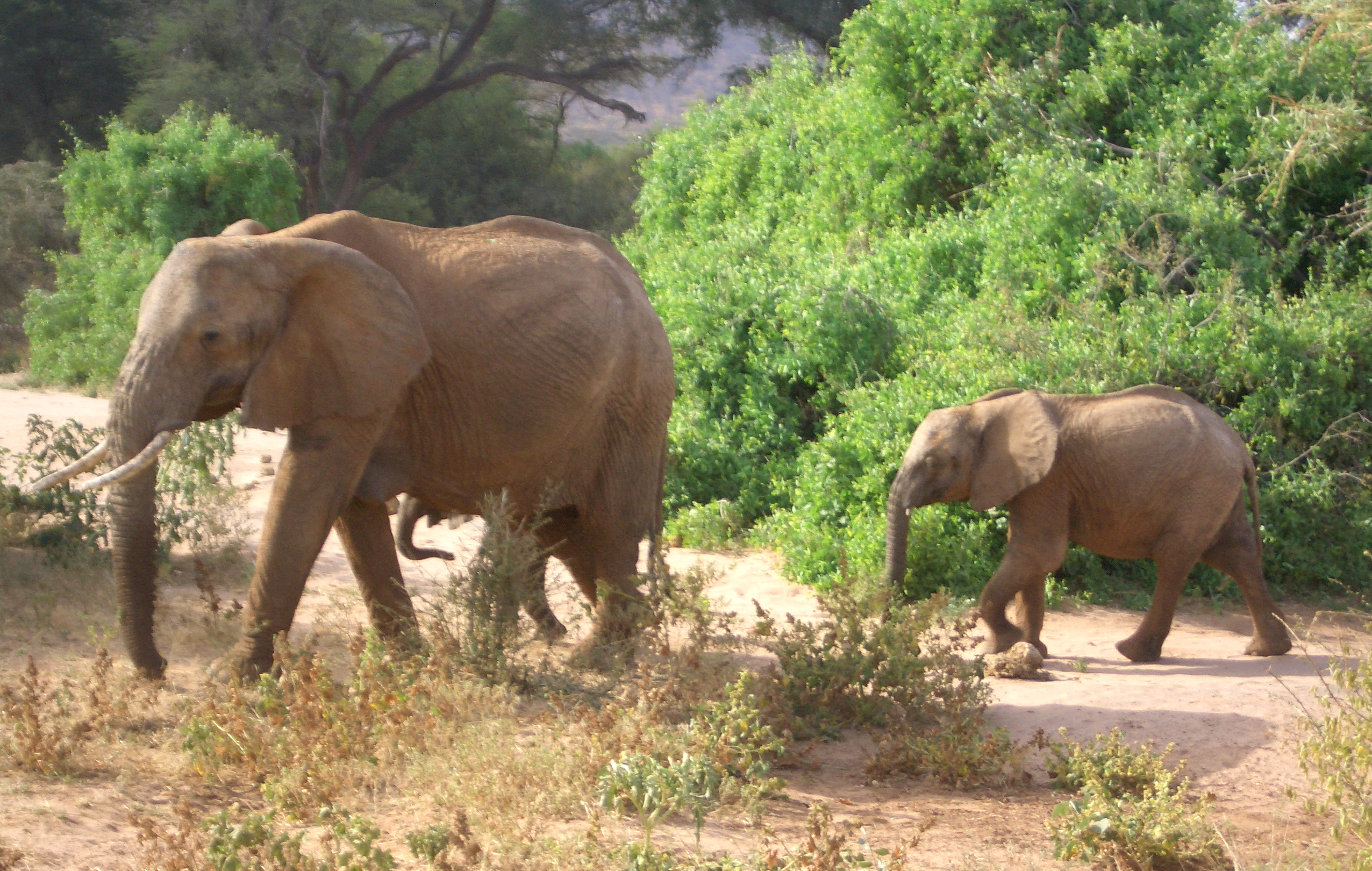From the Nairobi Serena Hotel we drove north past Mt.Kenya, stopping at the equator just south of Nanyuki. Then on north to Samburu National Park and the Samburu Serena Safari Lodge (0.530417oN 37.106722oE) where the open check-in area overlooked the Ewaso Ngiro river complete with elephants and other wildlife.